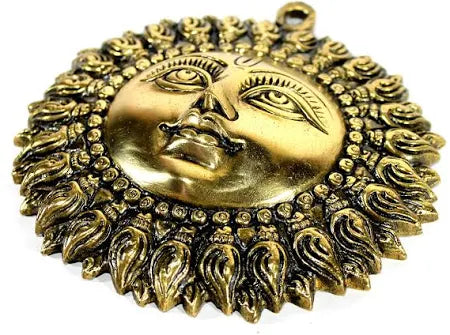 Small Brass Sun Face Wall Hanging – Source of Energy, Prosperity & Positivity (6 Inch)