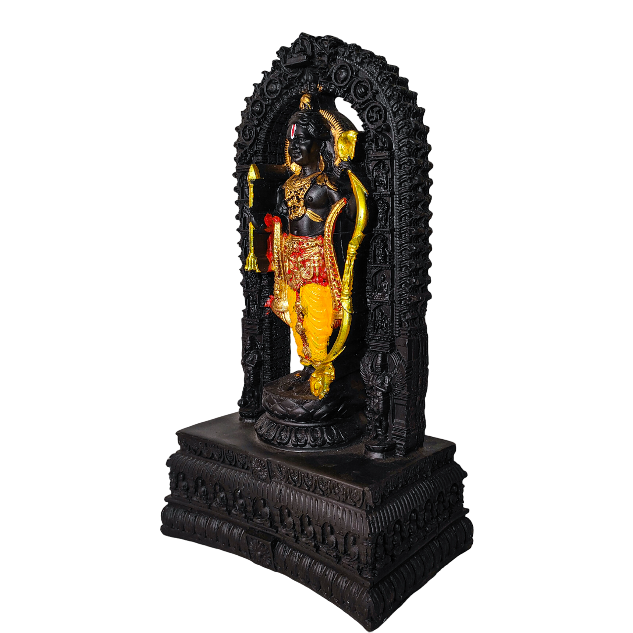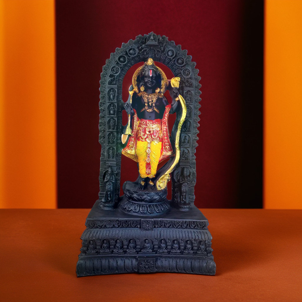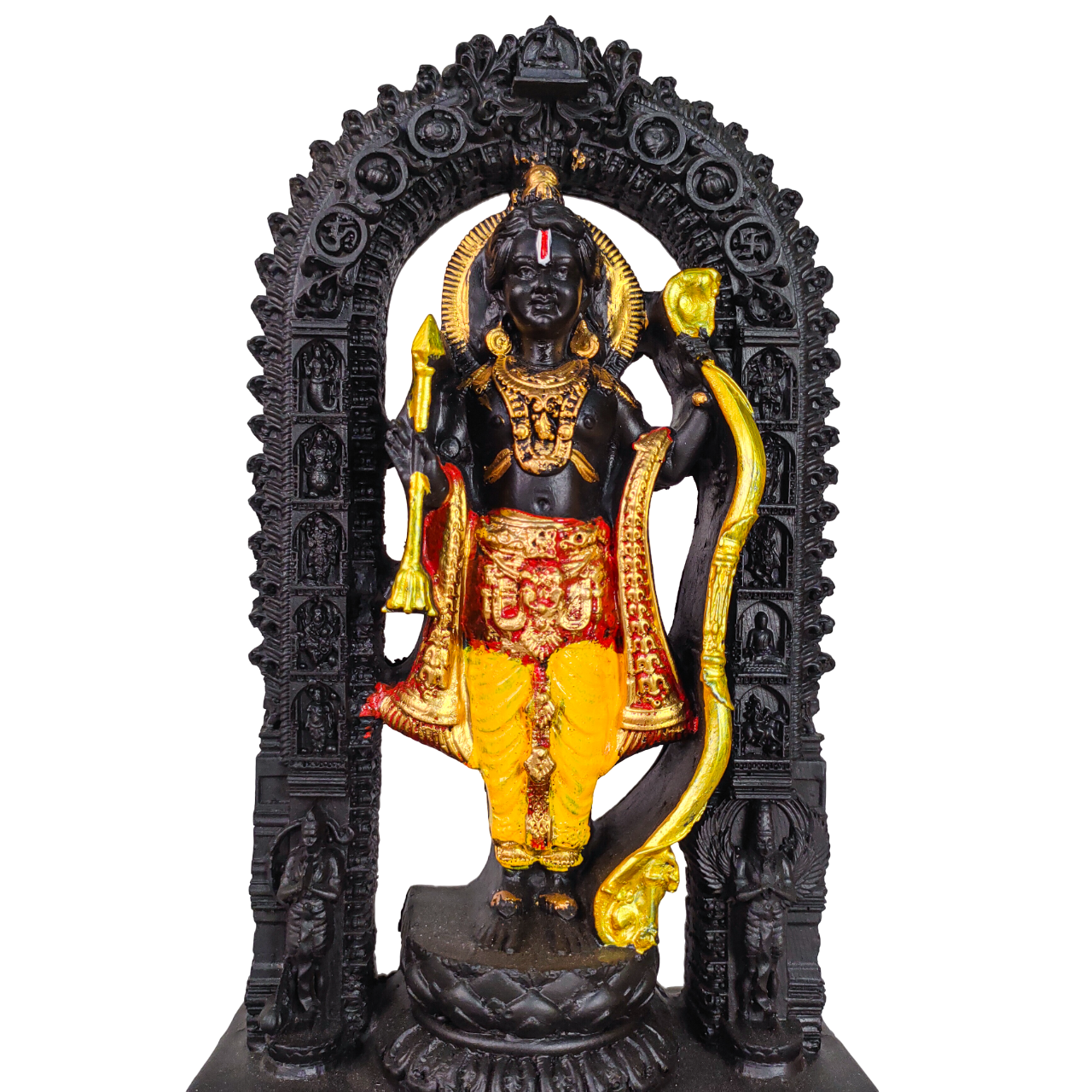 - Handcrafted Excellence: This Ram Lala Ji sculpture combines traditional artistry with contemporary elegance, featuring a luxurious black and golden finish with an antique touch.